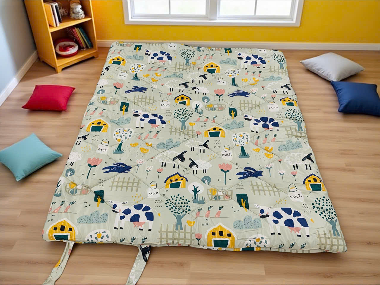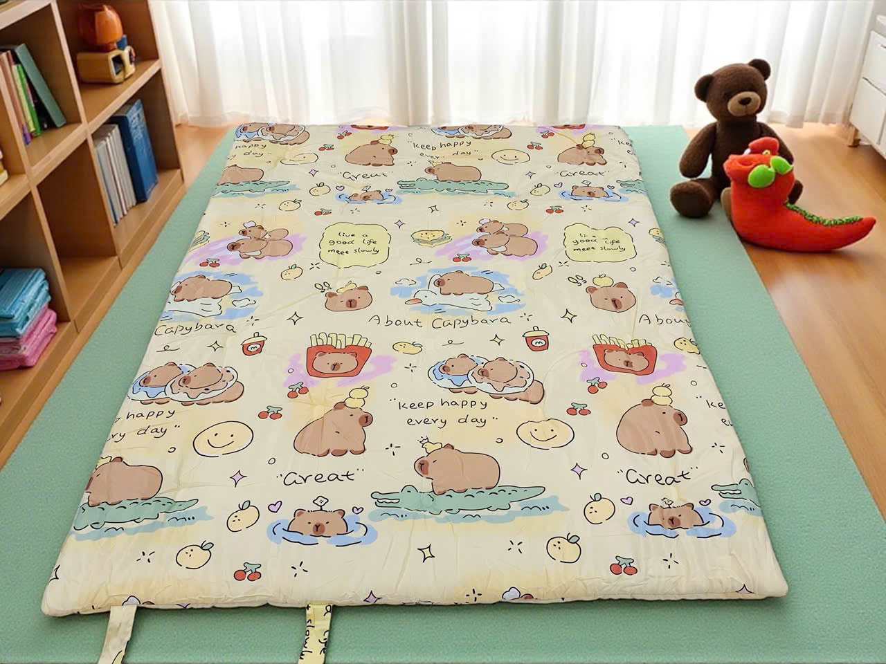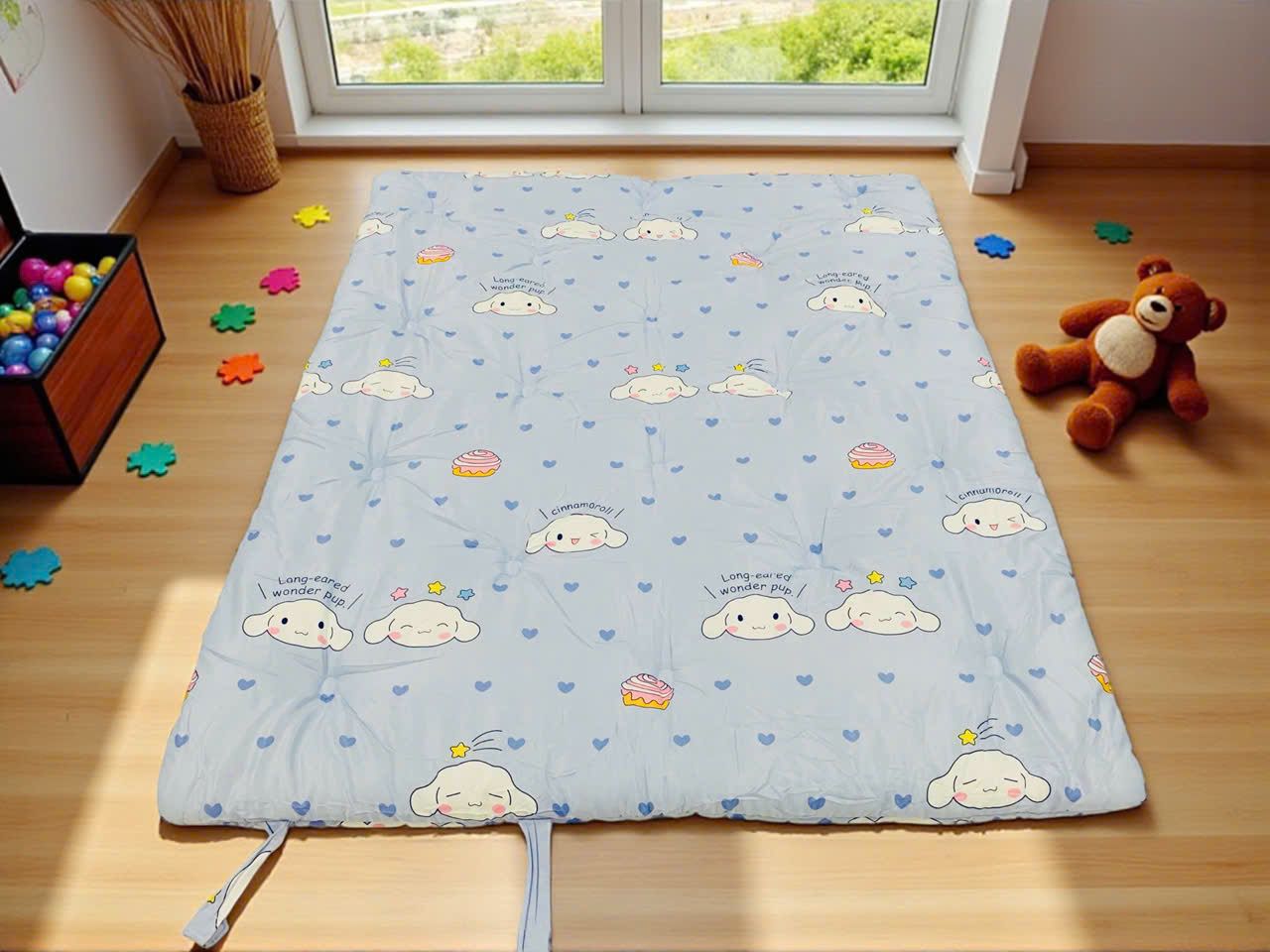 Bé có thể dùng khi đi học, trải trong lều riêng, hoặc đơn giản là làm chỗ chơi sạch sẽ – mềm mịn tại nhà.