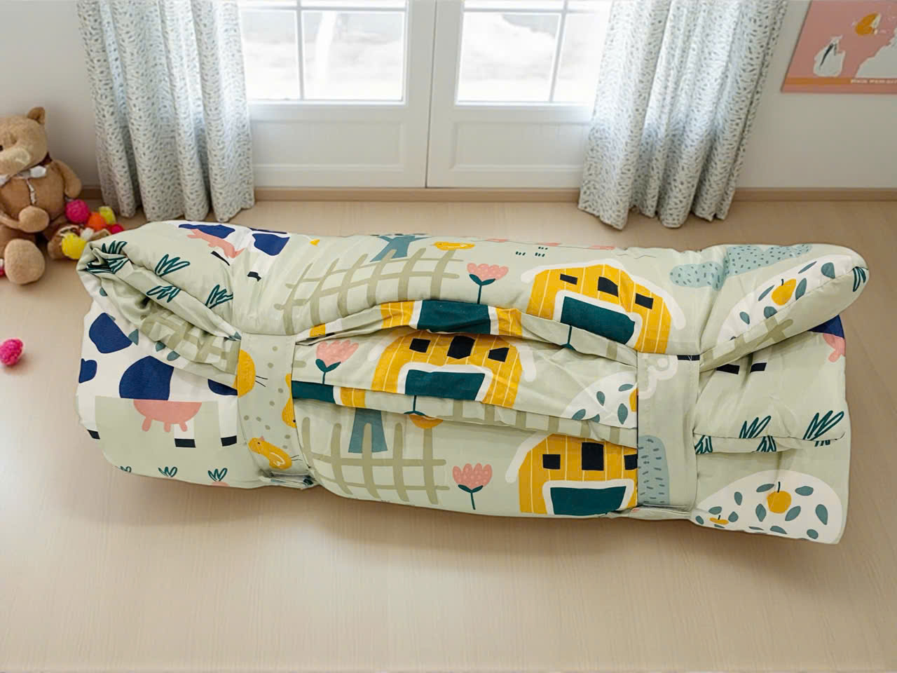Độ dày vừa phải, êm mà không nặng – mẹ dễ cuộn gọn, cất giữ hoặc mang theo khi ra ngoài.